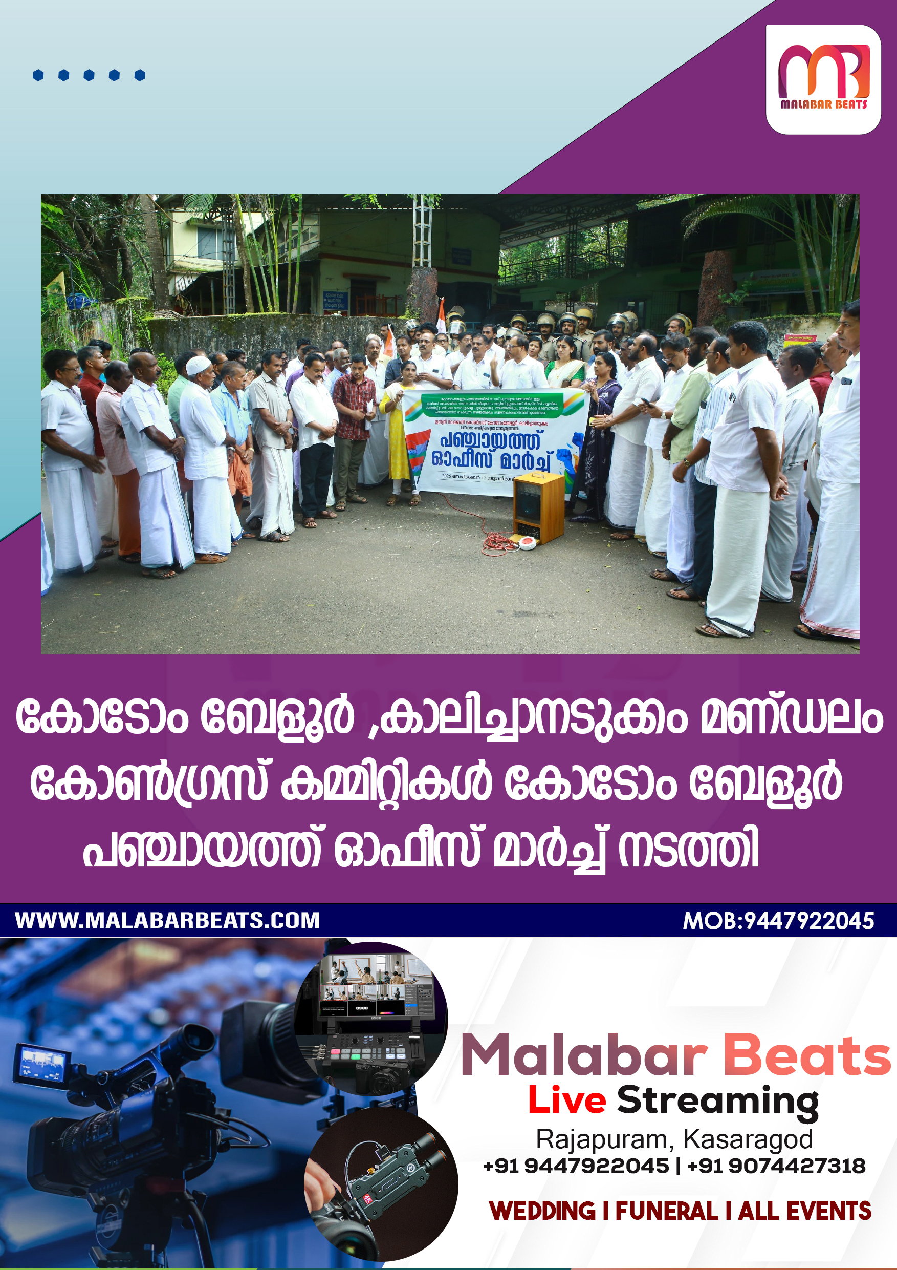 കോടോം ബേളൂർ ,കാലിച്ചാനടുക്കം മണ്ഡലം കോൺഗ്രസ് കമ്മിറ്റികൾ കോടോം ബേളൂർ പഞ്ചായത്ത് ഓഫീസ് മാർച്ച് നടത്തി