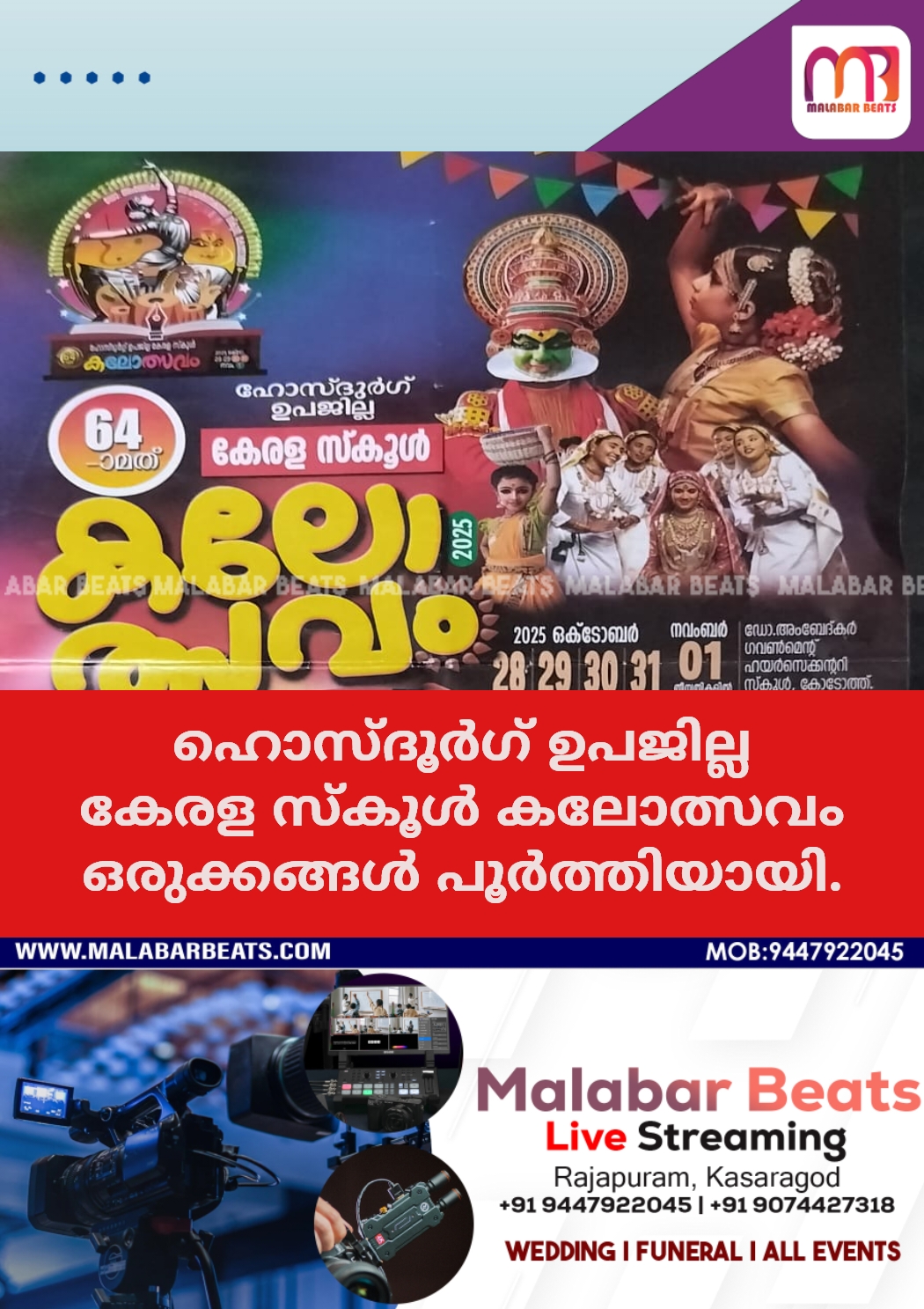 ഹൊസ്ദൂർഗ് ഉപജില്ല കേരള സ്കൂൾ കലോത്സവം ഒരുക്കങ്ങൾ പൂർത്തിയായി.