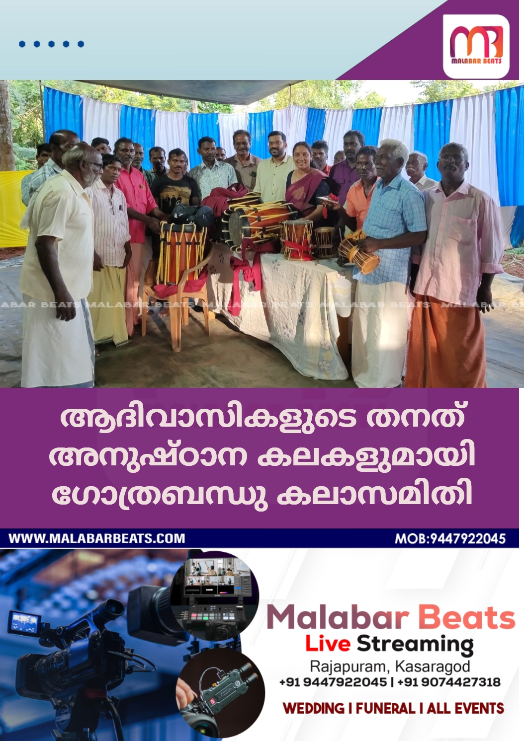 കോടോം -മ്പേളൂരിൽ സെൻ്റർ ഫോർ റിസർച്ച് ആൻഡ് ഡവലപ്മെൻ്റ് നടപ്പാക്കി വരുന്ന നബാർഡ് ആദിവാസി വികസന പദ്ധതിയുടെ ഭാഗമായാണ് ഒരു മാസത്തിലധികമായി ഗോത്രകലകളുടെ പരിശീലനം നടക്കുന്നത്.