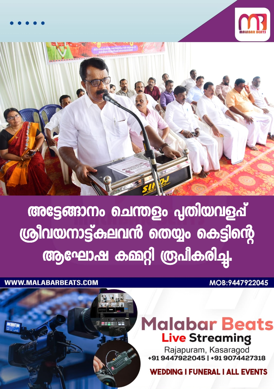 അട്ടേങ്ങാനം ചെന്തളം പുതിയവളപ്പ്‌ ശ്രീവയനാട്ട്‌കുലവൻ തെയ്യം കെട്ടിന്റെ ആഘോഷ കമ്മറ്റി രൂപീകരിച്ചു.