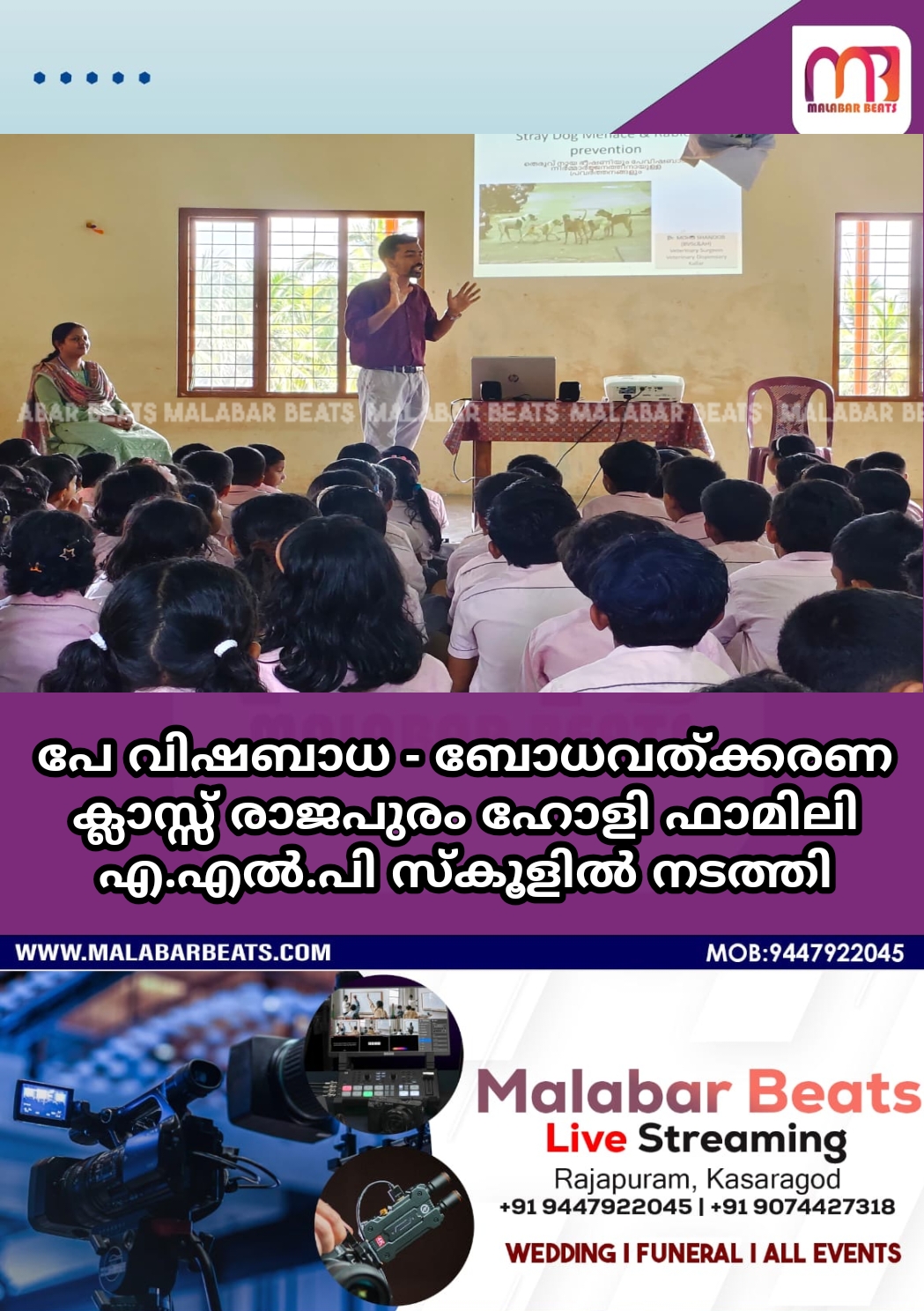 പേ വിഷബാധ – ബോധവത്ക്കരണ ക്ലാസ്സ് രാജപുരം ഹോളി ഫാമിലി എ.എൽ.പി സ്കൂളിൽ നടത്തി