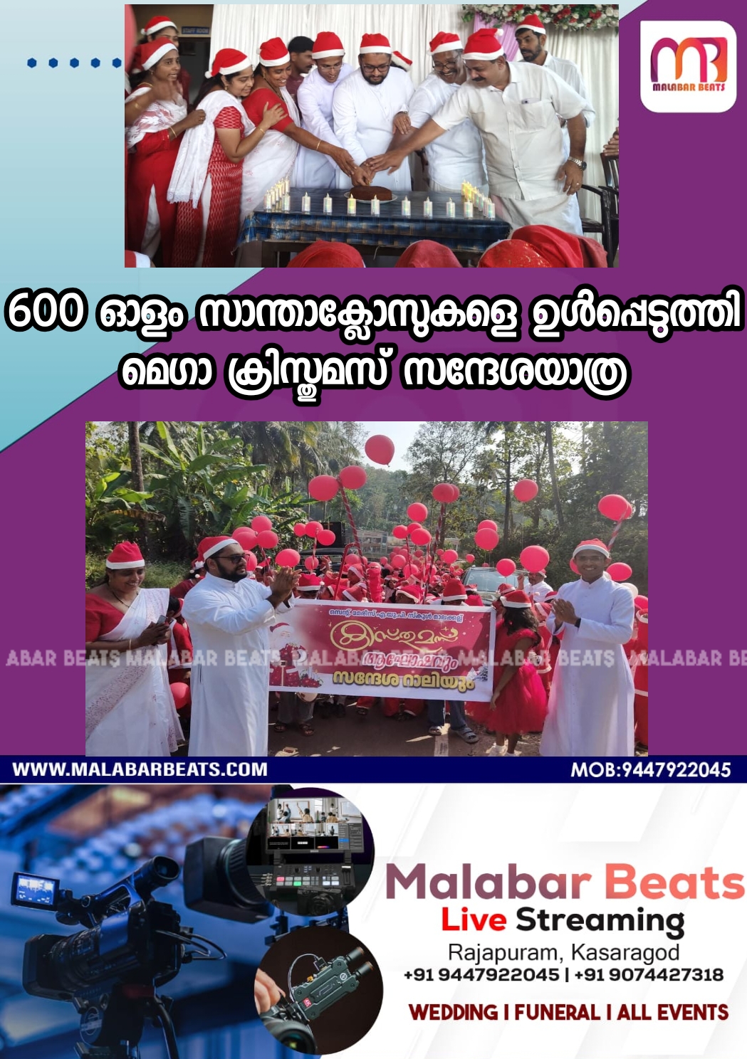 എയുപി സ്കൂളിൽ ക്രിസ്തുമസ് ആഘോഷിച്ചു. ഇന്നു ഉച്ചയ്ക്ക് 1 മണിയോടെ ആരംഭിച്ച വൈവിധ്യമാർന്ന പരിപാടികളിൽ കുട്ടികളുടെ സജീവമായ പങ്കാളിത്തം ഉണ്ടായിരുന്നു. 600 ഓളം സാന്താക്ലോസുകളെ ഉൾപ്പെടുത്തി മെഗാ ക്രിസ്തുമസ് സന്ദേശയാത്ര നഗരം ചുറ്റി നടത്തി. ക്രിസ്തുമസ് ആഘോഷത്തിൽ രാജപുരം ഫൊറോന വികാരി ഫാ.ജോസ് അരീച്ചിറ ഉദ്ഘാടനം ചെയ്തു. തുടർന്ന് സ്കൂൾ ഹെഡ്മാസ്റ്റർ എം.എ.സജി, സ്കൂൾ മാനേജർ ഫാദർ ഡിനോ കുമ്മാനിക്കാട്ടിൽ, അസിസ്റ്റന്റ് മാനേജർ ഫാദർ ടിനോ ചാമക്കാല, വാർഡ് മെമ്പർ മിനി ഫിലിപ്പ്, പിടിഎ പ്രസിഡന്റ് ബിനീഷ് തോമസ്, മദർ പി ടിഎ പ്രസിഡന്റ് സുമിഷാ പ്രവീൺ, മൂന്നാം വാർഡ് സനിത ജോസഫ്, അഞ്ചാം വാർഡ് മെമ്പർ സി.എം.സാബു എന്നിവർ സംസാരിച്ചു. കുട്ടികളുടെ ക്രിസ്തുമസ് കലാപരിപാടികളോടെ ആഘോഷം സമാപിച്ചു.