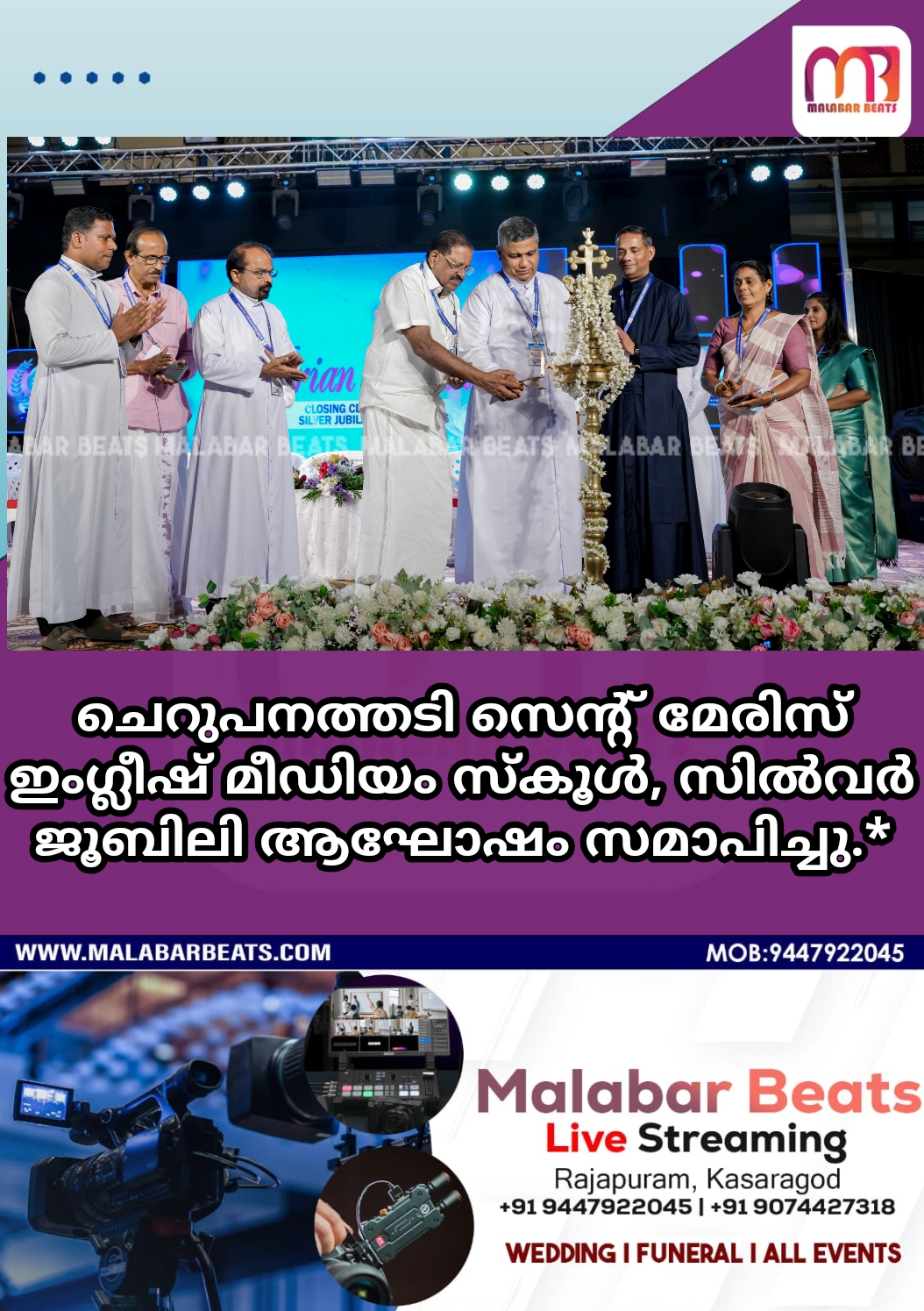 രാജപുരാ : ചെറുപനത്തടി സെന്റ് മേരീസ് ഇംഗ്ലീഷ് മീഡിയം സ്കൂളിന്റെ സിൽവർ ജൂബിലി ആഘോഷങ്ങളുടെ സമാപനം 2026 ജനുവരി 20 ന് സ്കൂൾ ഓഡിറ്റോറിയത്തിൽ വച്ച് വിപുലമായ പരിപാടികളോടെ ആഘോഷിച്ചു. തലശ്ശേരി അതിരൂപത മെത്രാപ്പോലീത്ത മാർ.ജോസഫ് പാംപ്ലാനി ഉദ്ഘാടനം ചെയ്തു.