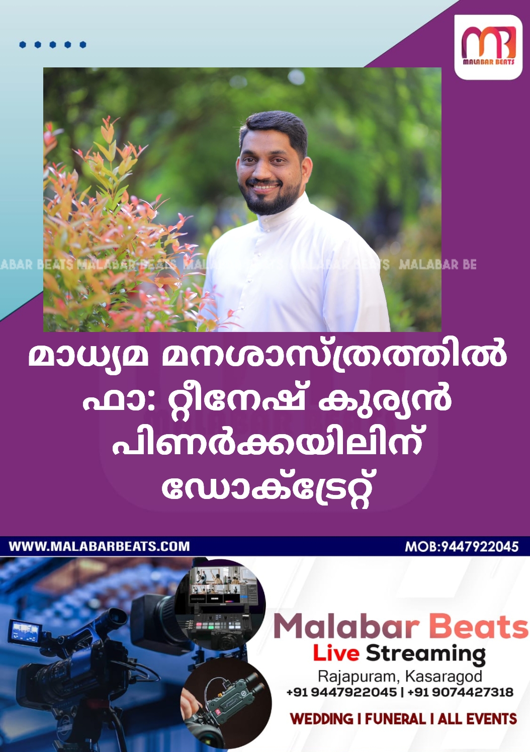 മാധ്യമ മനശാസ്ത്രത്തിൽ ഫാ: റ്റീനേഷ് കുര്യൻ പിണർക്കയിലിന് ഡോക്ട്രേറ്റ്