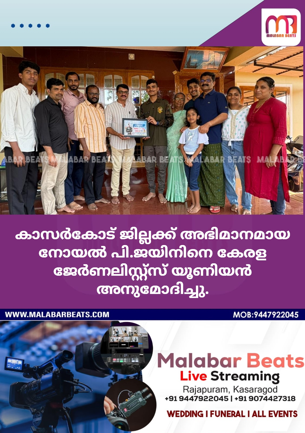 മേഖല കമ്മിറ്റി ഭാരവാഹികൾ വീട്ടിലെത്തി അനുമോദിച്ചു. ‘ മേഖല പ്രസിഡൻ്റ് രവീന്ദ്രൻ കൊട്ടോടി ഉപഹാരം നൽകി.