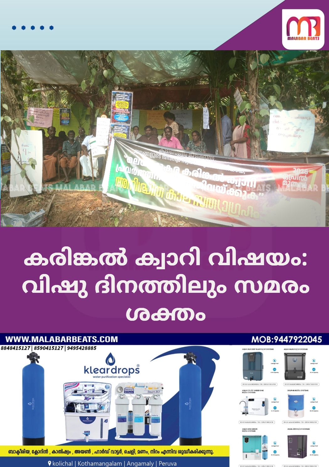 രാജപുരം: ജനങ്ങളുടെ ജീവനും സ്വത്തിനും ഭീഷണിയായി മലയറ്റുകരയിൽ പ്രവർത്തിക്കുന്ന വൻ മാഫിയയുടെ നിയന്ത്രണത്തിലുള്ള കരിങ്കൽ ക്വാറിയുടെ പ്രവർത്തനം നിർത്തിവയ്ക്കണമെന്നാവശ്യപ്പെട്ട് ജനകീയ സമിതി നടത്തിവരുന്ന സത്യാഗ്രഹ സമരപന്തലിൽ വിഷുദിനത്തിലും പ്രതിഷേധം ശക്തം.